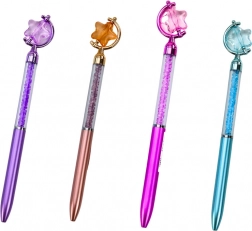 Štýlové guľôčkové pero s dekoratívnou hviezdičkou a trblietavými „diamantíkmi“ vo vnútornej časti. Píše modrým atramentom, má hrot 0,7 mm pre hladké a presné písanie. Dostupné v mixe farieb – fialová, modrá, ružová a zlatá. Skvelé do školy, do práce aj ako darček.