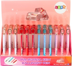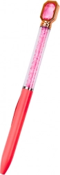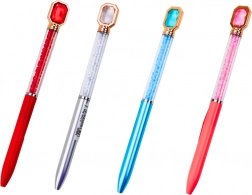 Elegantné guľôčkové pero s priehľadným telom vyplneným trblietavými kamienkami a jemným kryštálom na konci. Modrý atrament zabezpečuje hladké a plynulé písanie, ideálne na každý deň aj na darčekové využitie. Dostupné v mixe farieb tela (ružová, modrá, červená, strieborná).