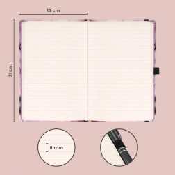 Štýlový zápisník NOTIQUE s motívom sakura je ideálny na každodenné písanie. Vďaka pevným doskám a uzatváraniu na gumičku zostane obsah v bezpečí, zatiaľ čo pútko na pero a praktické vnútorné vrecko uľahčí organizáciu drobností.
