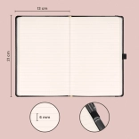 Elegantný zápisník NOTIQUE v pevných doskách s gumičkou na uzatvorenie, pútkom na pero a vnútorným vreckom. Ponúka 172 strán na príjemnom žltom papieri pre všetky nápady, denníkové záznamy aj pracovné poznámky. Kompaktný rozmer 13 × 21 cm sa zmestí do tašky aj batohu.