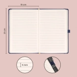 Linajkový zápisník NOTIQUE v tmavomodrej farbe ponúka kvalitný balacronový povrch, ktorý je mimoriadne odolný voči oderu a nečistotám. Vďaka rozmeru 15 × 21 cm sa pohodlne zmestí do tašky a poskytne dostatok priestoru na každodenné poznámky.