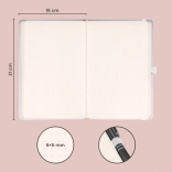 Vďaka univerzálnemu formátu 15 × 21 cm sa zmestí do väčšiny tašiek a batohov, takže ho môžete mať stále pri sebe. Bodkovaná lineatúra uľahčuje prehľadné plánovanie, tvorbu tabuliek aj presné schémy poznámok bez rušivých plných čiar.