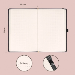 Bodkovaná mriežka ponúka flexibilitu na písanie, kreslenie aj tvorbu prehľadných rozvrhov. Povrch je navyše vhodný na razbu loga, takže zápisník ľahko premeníte na štýlový firemný darček alebo prezentačný materiál.