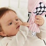 Vnútorný šušťavý materiál prináša akustickú stimuláciu, ktorá je ideálna na rozvoj sluchových zručností dieťaťa.