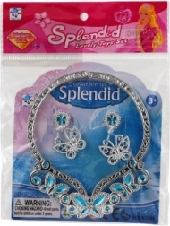 Rozžiarte detské kostýmy aj každodenné hranie touto trblietavou sadou šperkov pre malé parádnice. Balenie obsahuje náhrdelník a náušnice s jemnými detailmi, ideálne na karneval, preoblečenia aj štýlovú hru na princezné. Ľahká a bezpečná plastová bižutéria pre deti od 3 rokov.