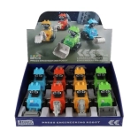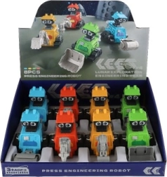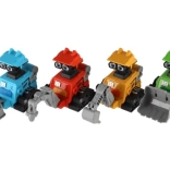 Roboti sú vyrobení z odolného plastu a prichádzajú v štyroch atraktívnych variantoch inšpirovaných stavebnou technikou. Kompaktné rozmery 8 × 10 × 14 cm padnú do detskej ruky a podnecujú predstavivosť aj rozvoj jemnej motoriky.