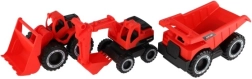 Táto všestranná sada obsahuje tri odolné plastové stroje – bager, nakladač a sklápač – ktoré deťom prinesú hodiny kreatívnej zábavy. Vďaka voľnobehu sa vozidlá ľahko rozbehnú jemným postrčením a pohyblivé časti (lyžica, rameno, korba) pridávajú na realistickosti hry.