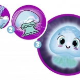 Zábavná vodná hračka pre deti: medúza GLIBBI, ktorá vytvára tyrkysový sliz a po nasvietení v tme žiari. Jednoduchá príprava, bezpečné zloženie a možnosť sliz uložiť späť do medúzy. Svieti v tme, jednoduchá príprava, dermatologicky bezpečné a opakovaná hra.