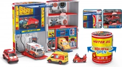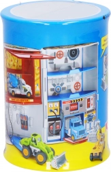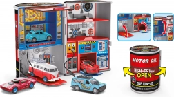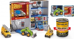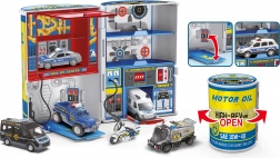Tento autoservis je ideálny darček pre každého malého nadšenca do áut. Dodáva sa s jedným kovovým autom a ponúka štyri rôzne varianty: policajný, hasičský, stavebný a pretekársky. Všetky vozidlá majú voľné kolesá, čo zabezpečuje jednoduché manévrovanie.