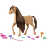 Koník Barbie Pepper má dlhú a krásnu hrivu, ktorú je možné ľahko česať a zdobiť vďaka príčeskom a rôznym sponkám.