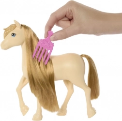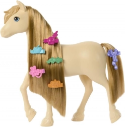 Koník má detailne spracované telo a stojí v štýlizovanej chôdzi, čo z neho robí krásny kúsok do detskej zbierky. Hra s vlasmi rozvíja jemnú motoriku, kreativitu a predstavivosť. Možno kombinovať s bábikami a ďalšími doplnkami zo sveta Barbie (predávajú sa samostatne).