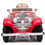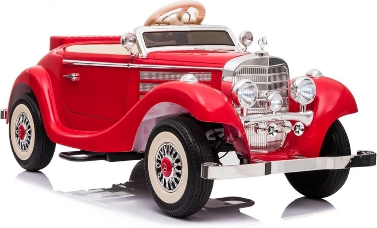 Retro roadster MERCEDES-BENZ 540K na akumulátor poteší malých vodičov elegantnou karosériou, chrómovanými prvkami a palubnou doskou v odtieni pripomínajúcom orechové drevo. Interiér dopĺňa komfortná lavica z jemnej svetlej ekokože a ergonomický volant. O bezpečie sa stará bedrový pás a plynulý rozjazd bez trhania.