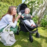 Veľké kolesá z EVA peny s odpružením 4 kolies hladko prekonajú nerovnosti. Predné kolesá s aretáciou sa prispôsobia terénu, zatiaľ čo priestranný košík pojme všetko potrebné. Kočík spĺňa normu EN 1888 a má európsky certifikát TÜV, takže spĺňa prísne bezpečnostné požiadavky.