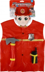 Výrazná červená vesta so žltými prvkami a odznakom dodá hre realistický vzhľad a skvele sadne deťom od 3 do 7 rokov.