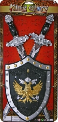• Realistický vzhľad – strieborné čepele, dekorované rukoväte a zlatý orol na štíte