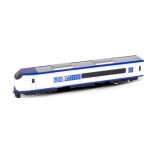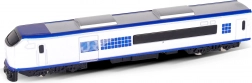 Biele prevedenie s modrými detailmi a čistými líniami zvýrazňuje moderný vzhľad lokomotívy – ideálne na hru aj na výstavku.