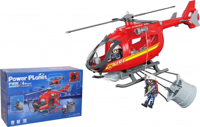 Hasičská helikoptéra s efektmi 38cm, nabitá svetelnými a zvukovými efektmi. Otváracie dvere a kabína pre panáčikov.