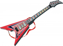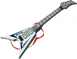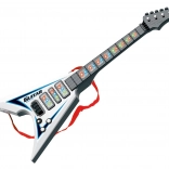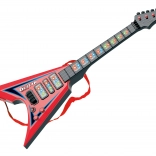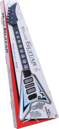 Táto elektrická gitara je ideálna pre začínajúcich aj pokročilých hudobníkov vďaka svojim rozmerom 22x5x56 cm. Má svetelné a zvukové efekty, ktoré vytvárajú jedinečný zážitok pri hraní. Napäťie troma 3xAA batériami, ktoré nie sú súčasťou balenia, a jednoduché ovládanie vďaka ON/OFF prepínaču pri potenciometroch. Oba potenciometre slúžia na ovládanie efektov.