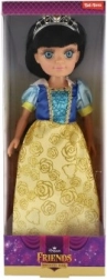 Predstavujeme vám rozprávkovú bábiku, ktorá očarí svojou krásou a detailným spracovaním. Bábika je vysoká 38 cm a je oblečená do nádherných modro-žltých šiat zdobených kvetinovými vzormi. Na hlave nosí striebornú tiaru, ktorá podčiarkuje jej kráľovský vzhľad. Táto bábika je perfektná pre imaginárne hry a ponúka množstvo možností pre rolové hranie. Hračka je vybavená pohyblivými končatinami, čo umožňuje rôzne pózy a vďaka svojim rozmerom sa ľahko zmestí do detských rúk.