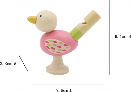Originálna píšťalka v tvare vtáčika, ktorá ponúka štyri rôzne farebné varianty - ružová, modrá, žltá a oranžová.