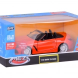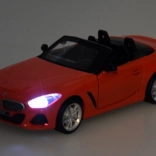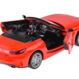 Tento detailne spracovaný kabriolet BMW Z4 M40i vyniká kvalitným prevedením pre autentický vzhľad aj hranie. Kovová karoséria, gumové kolesá a plastový podvozok zabezpečujú pevnosť a dlhú životnosť. Po otvorení dverí sa aktivujú zvuky klaksónu a alarmu doplnené o blikajúce svetlá vpredu aj vzadu. Pritlačením modelu k podložke spustíte zvuk štartu a chodu motora, pričom sa rozsvieti aj prístrojová doska.