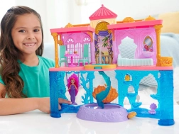 Objavte čarovný svet Disney princeznej Ariel s dvojposchodovým palácom, ktorý prepája pozemské aj podmorské kráľovstvo. Deti si užijú 6 herných zón, točiaci parket, jedáleň, spálňu aj podmorský bazénik s bublinkovým tlačidlom. Súčasťou je bábika Ariel so zmenou vzhľadu – ružové šaty a chvost, ktorý mení farbu v teplej vode – pre nekonečné príbehy a kreatívne hranie.