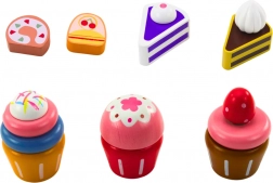 Všetky diely sady sú vyrobené z vysokokvalitného dreva, ktoré zaisťuje odolnosť a pevnosť hračky. Drevené maškrty sú vyhotovené v živých, atraktívnych farbách, ktoré upútajú pozornosť a podporujú kreatívnu hru. Sada je ideálna na kuchynské rolové hry, rozvíja detskú predstavivosť a manuálnu zručnosť.