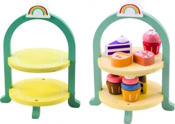 Drevená sada na múčniky je elegantná a očarujúca hračka, ktorá deti uvádza do sveta sladkostí a kuchynských hier. Sada obsahuje štýlový stojan na sladkosti, ktorý plní dekoratívnu aj praktickú funkciu a dodá kúzlo každej detskej izbe alebo hre. V stojane sú vystavené rôzne drevené sladkosti, napríklad rozkošné torty, koláčiky a koláče, ktoré zaujmú precíznym spracovaním a citom pre detail.