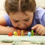Farební dinosaury podporujú deti pri vytváraní vlastných príbehov a scenárov počas hry, čím rozvíjajú ich tvorivé schopnosti.