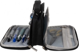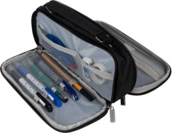 Oddelte písacie potreby, doplnky a elektroniku. Obojstranné zipsy umožnia rýchle a pohodlné otvorenie z oboch strán.