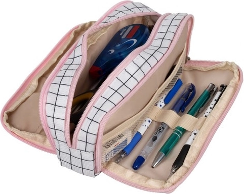 Univerzálne využitie ocenia žiaci, študenti aj profesionáli. Peračník sa hodí do školy, kancelárie, na domácu organizáciu aj na cestovanie – uložíte v ňom kozmetiku, káble, nabíjačky a ďalšie drobnosti. Elegantný kockovaný vzhľad s ružovým lemovaním podčiarkne váš štýl.