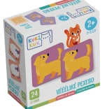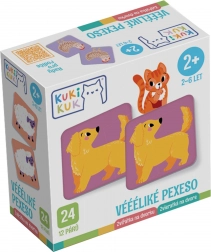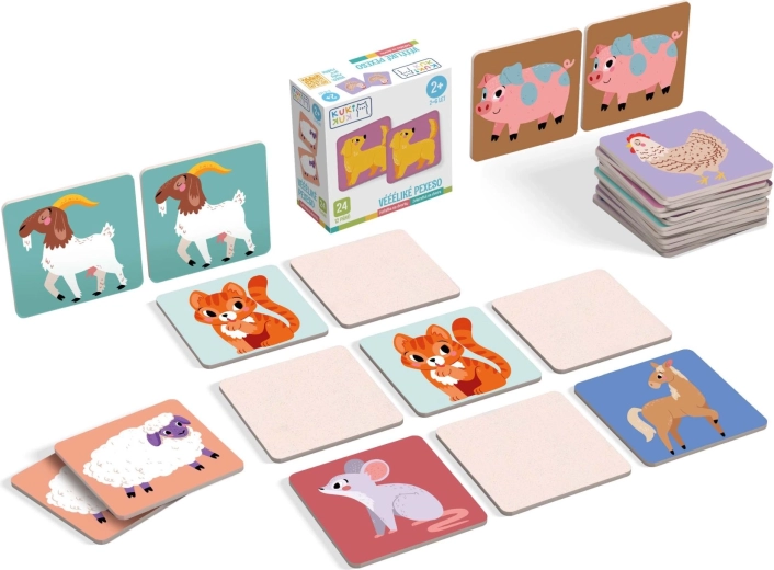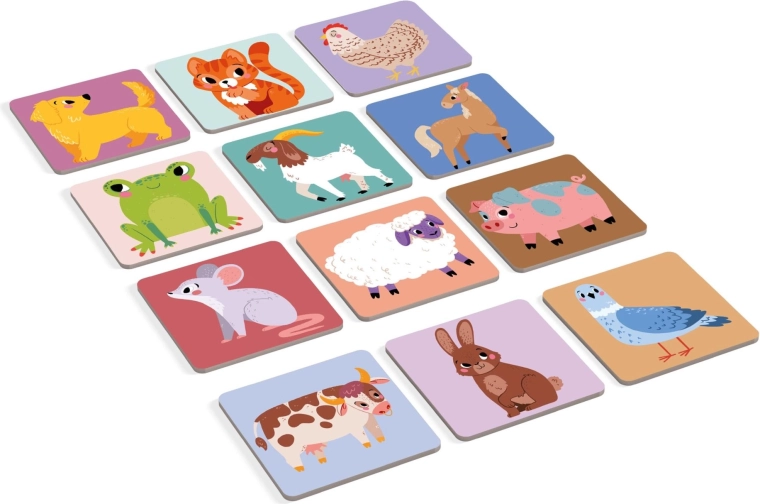 Véééliké pexeso Zvieratká na dvore je ideálne prvé pexeso pre predškolákov. Veľké, ľahko uchopiteľné karty s veselými ilustráciami domácich zvierat rozvíjajú vizuálnu pamäť, pozornosť, slovnú zásobu aj jemnú motoriku. Priložená brožúra ponúka nápady na aktivity – od prvého hľadania dvojíc cez maľovanie podľa predlohy až po rozprávanie príbehov.