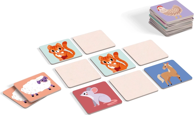 Hrajte klasické pexeso, prvé priraďovanie alebo maľovanky podľa kariet. Ideálna aktivita rodič–dieťa.