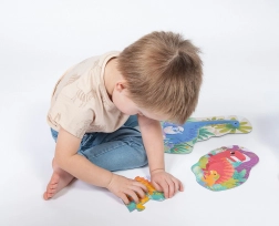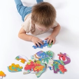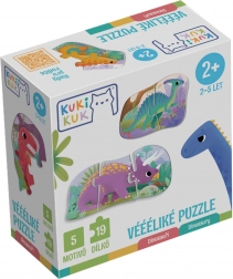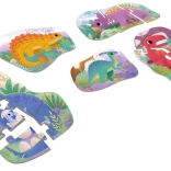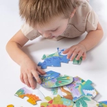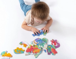 Každý dinosaurus tvorí samostatné puzzle so zjednodušeným tvarom. Deti si precvičia skladanie a pritom objavujú svet pravekých tvorov.