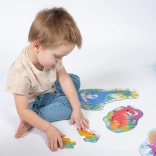 Objavte čaro skladania s farebnými dinosaurami, ktoré deti zaujmú na prvý pohľad. Veľké, pevné dieliky sú prispôsobené drobným ručkám a múdre tvary zámkov vedú deti k správnemu riešeniu. Každý dinosaurus tvorí samostatné puzzle so zjednodušeným tvarom pre ľahké pochopenie.