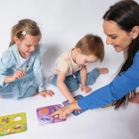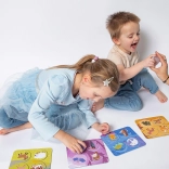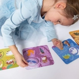 Deti sa hravou formou učia rozoznávať 24 zvieratiek a správne ich priraďovať k miestam, kde žijú – doma, na lúke, v lese či vo vode. Skvelé na rozvoj slovnej zásoby a porozumenia svetu okolo nás.