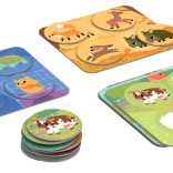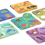 Táto obľúbená hra priateľskou formou zoznamuje batoľatá s 24 zvieratkami a ich prostrediami – doma, v lese, na lúke, pri rybníku aj v korunách stromov. Vďaka veľkým žetónom a odolným doskám z 2 mm kartónu je hra ľahko uchopiteľná a bezpečná pre malé deti. Súčasťou balenia sú aj tipy a varianty hier pre rodičov a učiteľov.