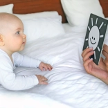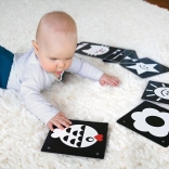 Jednoduché čiernobiele ilustrácie so silnými tvarmi podporujú vnímanie detailov a prirodzene upútajú pozornosť novorodencov.