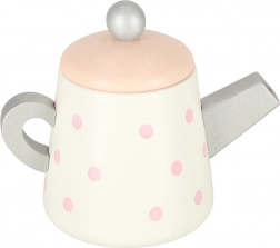 Drevená čajová sada má okúzľujúci pestrofarebný dizajn s jemnými bodkami, ktorý priťahuje pozornosť detí a povzbudzuje ich k hre.