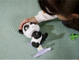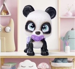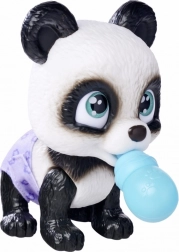 Panda pije vodu z priloženej fľaštičky a potom ciká do plienky, ktorá zmení farbu na žltú, keď je vlhká, pre autentický herný zážitok.