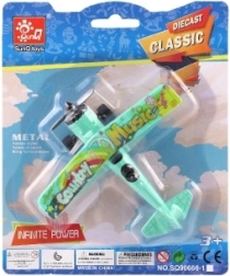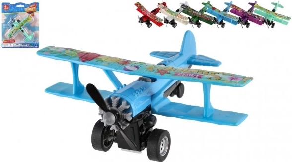 Farebný dvojplošník poteší každého malého pilota. Vďaka spätnému natiahnutiu vyrazí po uvoľnení vpred a pri jazde sa roztočí predná vrtuľa. Odolné vyhotovenie z kovu a plastu, kompaktný rozmer 10 × 11 cm a mix atraktívnych farieb z neho robia skvelú hračku pre deti od 3 rokov.