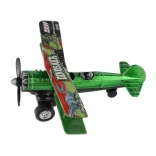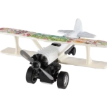 Kolieska, otáčajúca sa vrtuľa a klasická silueta dvojplošníka podporujú predstavivosť a tematickú hru pilotov.
