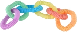 Táto farebná sada 6 plastových trubičiek ponúka nekonečné možnosti hry – od jednoduchého naťahovania a stláčania až po tvorbu originálnych výtvorov. Vďaka pružnej harmonikovej konštrukcii vydávajú trubky pri pohybe zábavné zvuky, ktoré podporujú zmyslové podnety a koncentráciu.