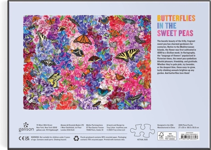 Ponorte sa do fascinujúcej kvetinovej kompozície s 37 odrodami hrachov a starostlivo umiestnenými motýľmi od dizajnéra a fotografa Troya Littena. Toto 1000‑dielne puzzle GALISON vyniká sýtymi farbami, kvalitnou tlačou a motívom, ktorý poteší milovníkov prírody aj skúsených skladateľov.