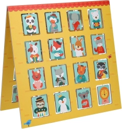 Obojstranná herná doska s okienkami, 16 kariet zvieratiek, 2 stojany, návod