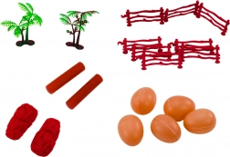 Stromy, ploty a ďalšie plastové prvky pomáhajú vytvárať vlastný praveký svet a rozvíjajú rolovú hru.