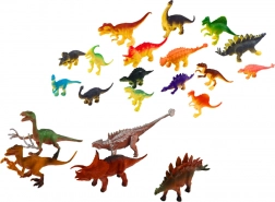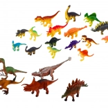 Rôznofarebné plastové figúrky dinosaurov doplnené príslušenstvom podporujú fantáziu a vzdelávanie formou hry.