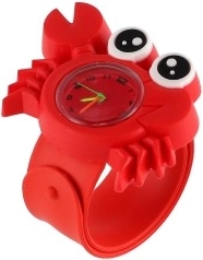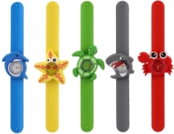 Zábavné detské hodinky s motívmi morských zvieratiek prinášajú ľahké učenie času a pohodlné nosenie. Vďaka samonavíjaciemu (slap) silikónovému remienku sa hodinky jednoducho nasadia jedným „švihnutím“. Farebne odlíšené ručičky pomáhajú deťom lepšie čítať čas a integrovaná batéria LR626 zabezpečí okamžité použitie. K dispozícii je 5 veselých motívov – delfín, hviezdica, korytnačka, žralok a krab.