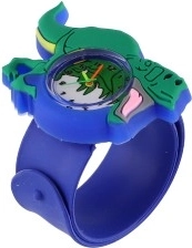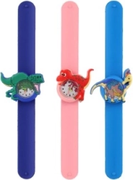 Detské hodinky s dinosauřím motívom kombinujú zábavu a funkčnosť. Samonavíjací (slap) remienok sa po jemnom „lupnutí“ sám ovinie okolo zápästia, takže si hodinky dieťa nasadí bez pomoci dospelých. Farebne odlíšené ručičky uľahčujú učenie času a podporujú jemnú motoriku aj samostatnosť.