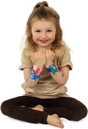 Stačí jemne „lupnúť“ o zápästie a remienok sa sám prichytí. Rýchle, zábavné a bezpečné nasadenie bez zložitého zapínania.